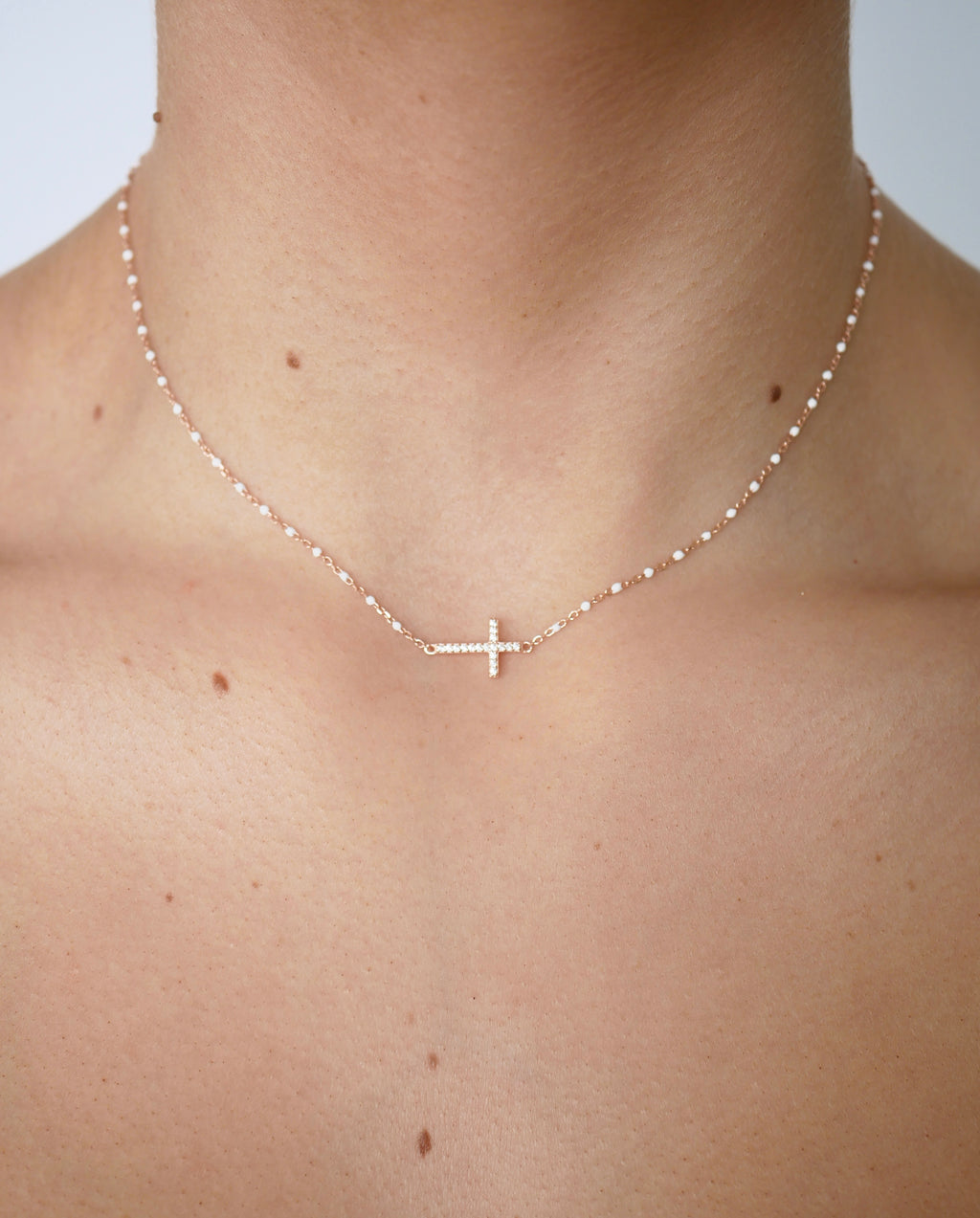 Wear your cross necklace as a reflection of your personal faith or as an appreciation of the symbol and its place in history and art. Gisele Collection offers many styles of cross necklaces including pendants and inline designs in many different crystals and stones. Many of our designs combine crosses with rosaries and evil eyes for added spiritual protection.