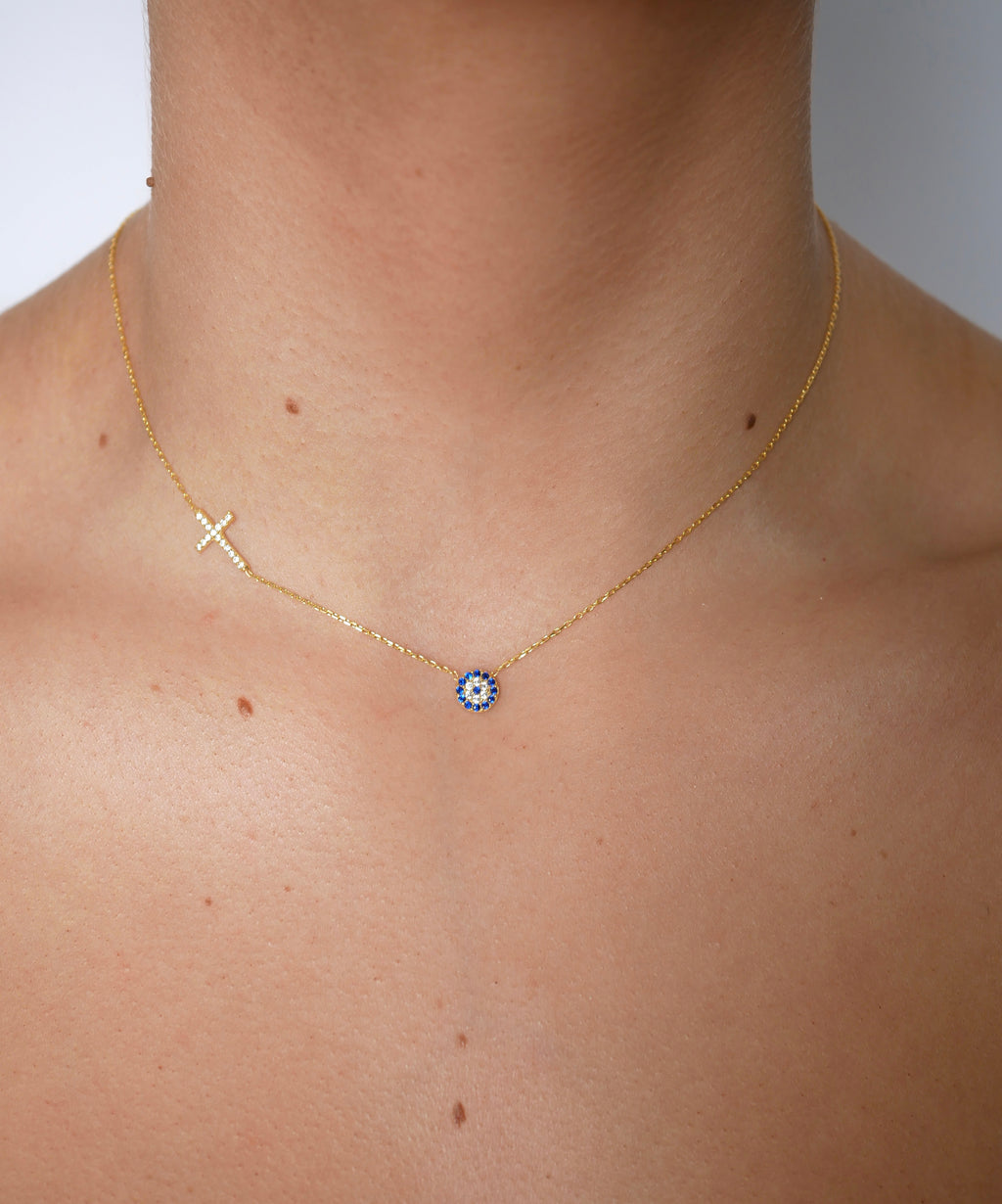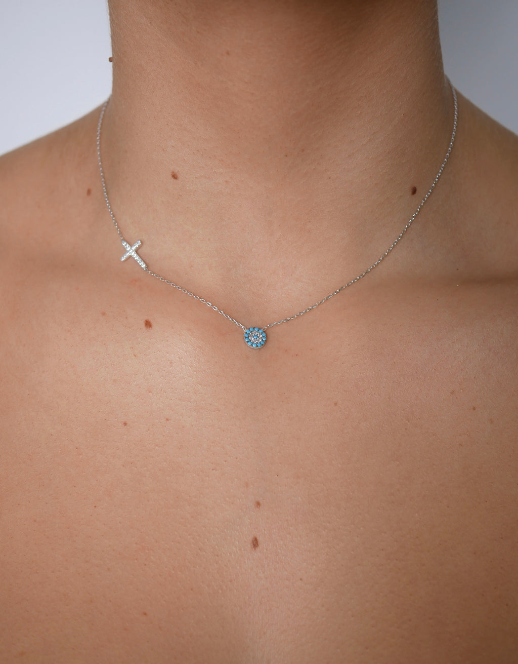 Claudia Turquoise Evil Eye Side Cross Necklace